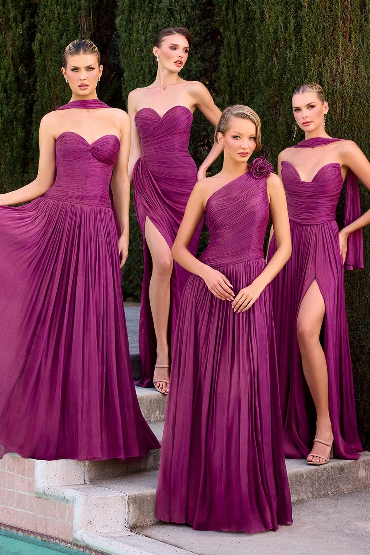 Embrace timeless sophistication with the Ladivine CD410 Dress, where modern glamour meets classic elegance. This stunning gown features a sweetheart strapless neckline adorned with soft pleating that beautifully accentuates your silhouette. Crafted from luminescent chiffon, the fabric shimmers with every movement, creating an enchanting effect throughout the evening. The A-line silhouette flows gracefully while the high slit adds contemporary allure and freedom of movement. A customizable lace-up corset back provides the perfect fit, ensuring you feel confident and supported all night long. Whether you're heading to prom, a formal gala, or a special celebration, this dress delivers the unforgettable presence you deserve.