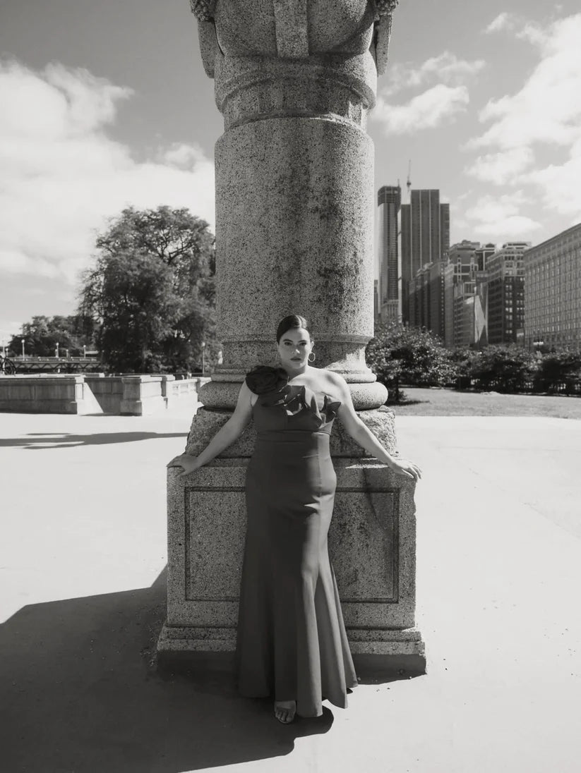 Elegance meets style in this stunning off-the-shoulder gown, crafted from luxurious crepe fabric. The ruffled neckline adds a sophisticated touch, while the flattering silhouette enhances your natural shape. Perfect for any special occasion, this gown combines timeless beauty with modern design.