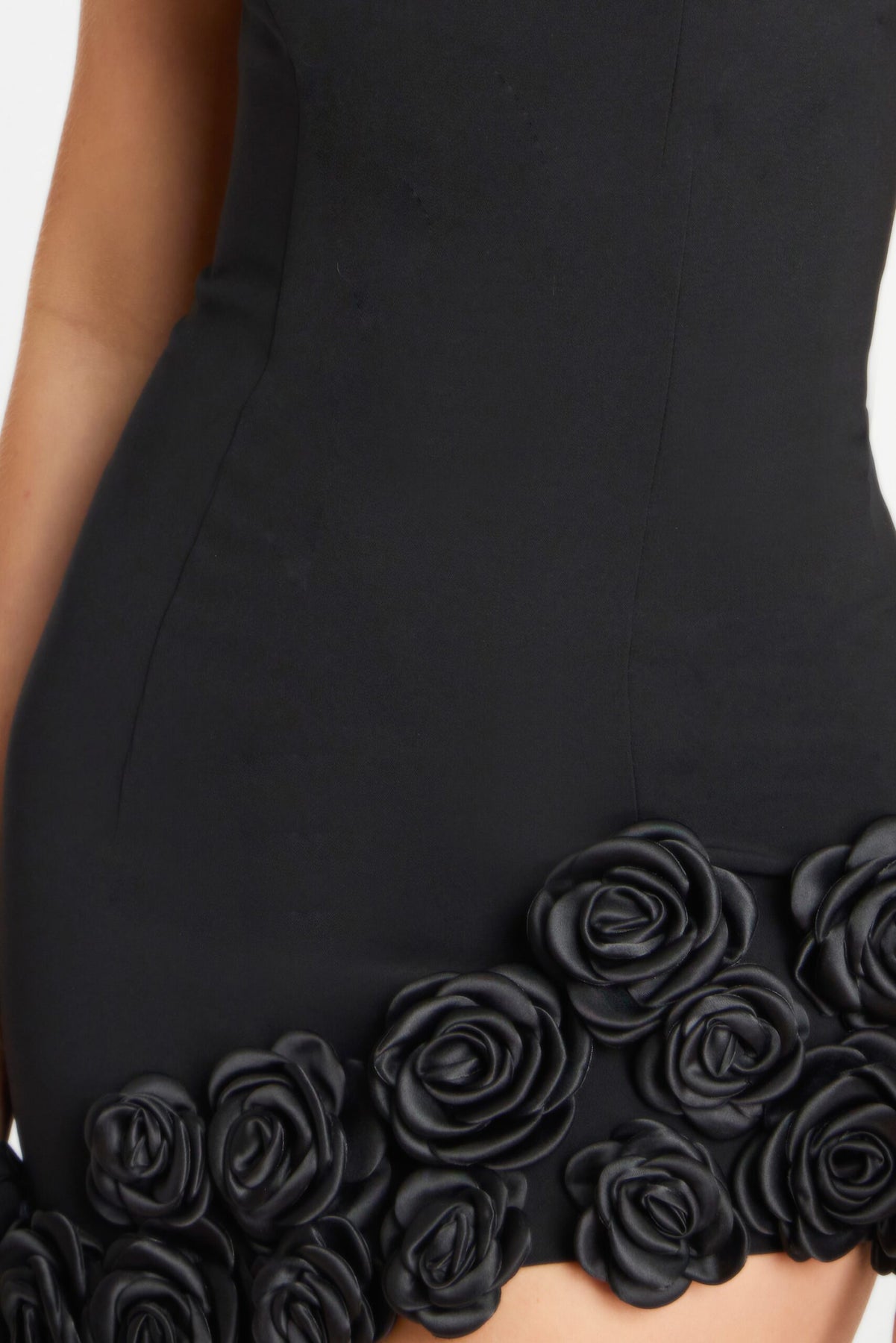 Turn heads in the Jovani 47796, a strapless black mini dress that’s as fun as it is flirty. The standout 3D rose detailing along the hem adds a whimsical touch, perfect for dancing the night away. Sleek and stylish, this dress effortlessly blends boldness with charm for your next unforgettable night out.