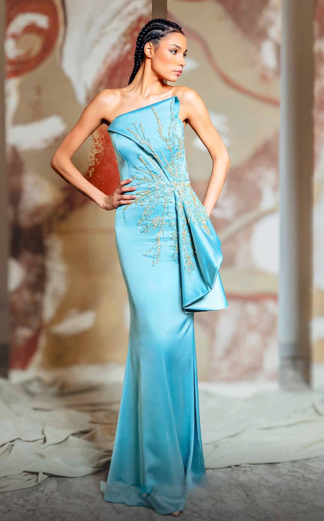 Stand out with the MNM Couture K4172 Dress, featuring a daring asymmetric neckline that adds bold character. The strapless, sleeveless design highlights your shoulders, while the open back elevates the allure. A striking hip extension completes the look, ensuring you make an unforgettable statement at any event.