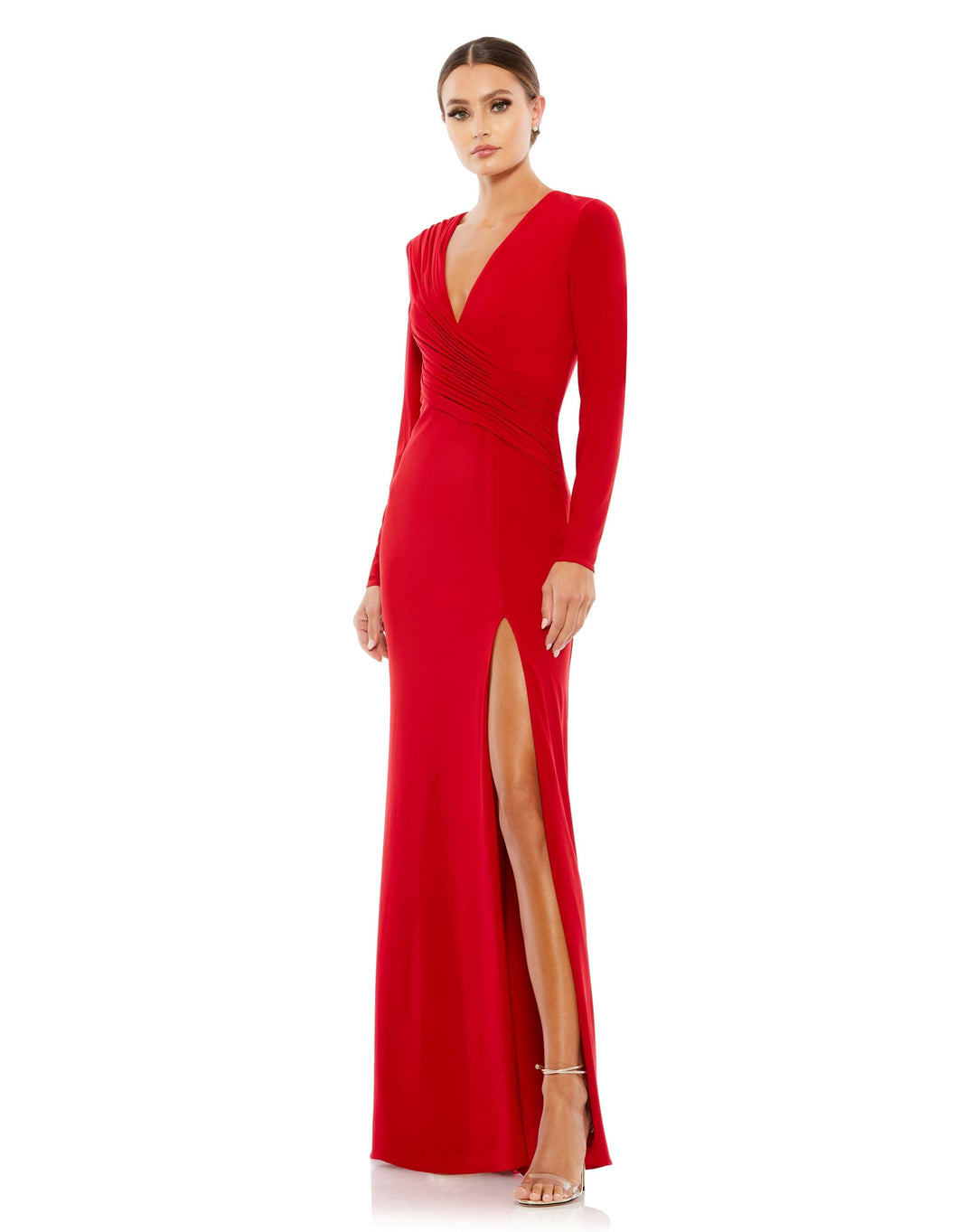 Jersey Long Sleeve Asymmetrical Ruched Gown
