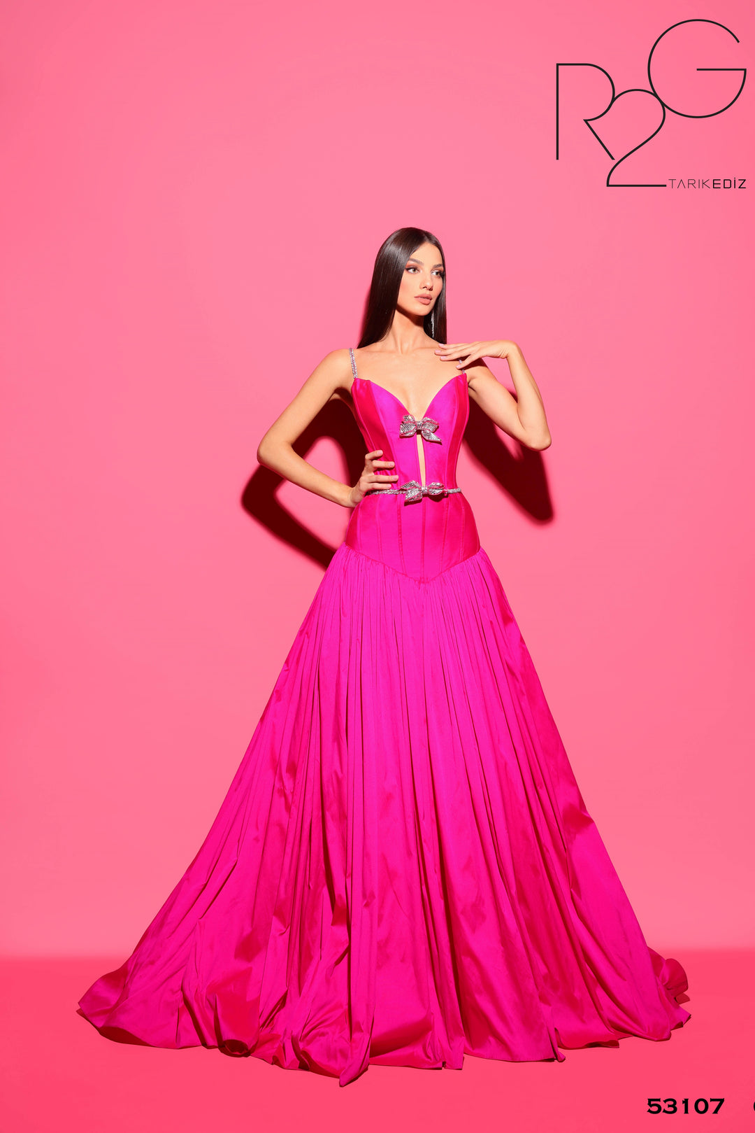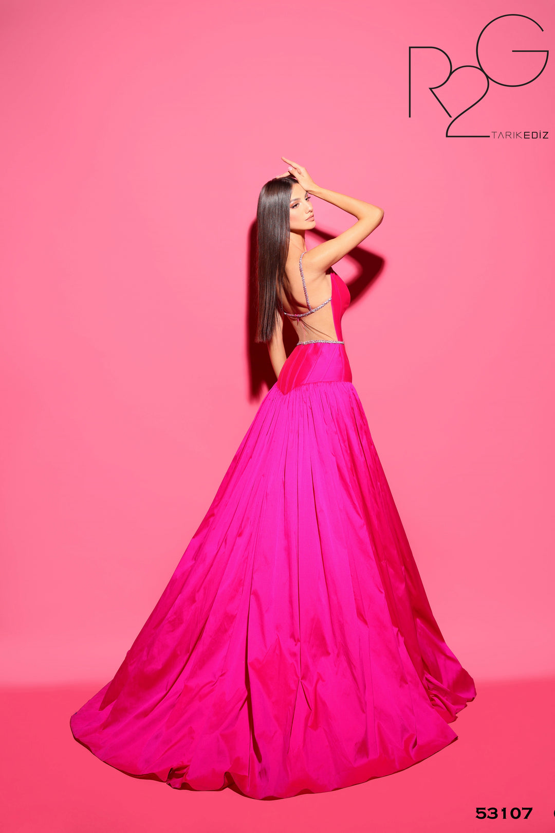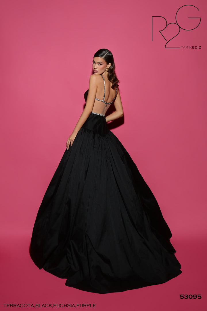 This stunning TARIK EDIZ 53095 dress features beaded straps and an open back with beaded straps. The sweetheart neckline adds a touch of elegance while the ball skirt creates a beautiful silhouette. With a small open in the middle, this dress is perfect for prom or any evening event.
