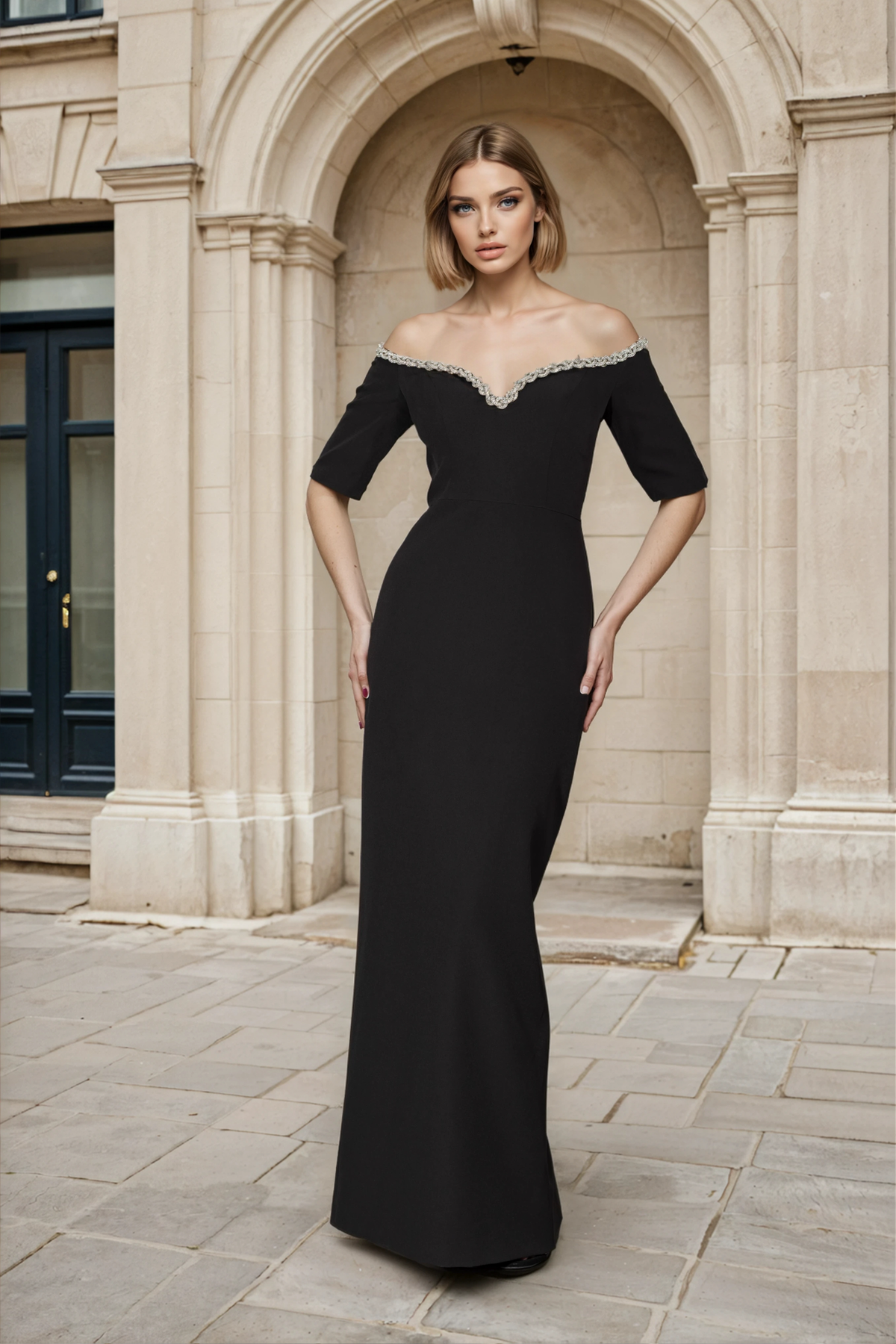Slip into sophistication with the Janique 2604 Dress, where timeless elegance meets modern flair. This stunning long dress features an off-shoulder neckline that exudes effortless glamour, paired with charming half sleeves for the perfect balance of allure and refinement. The flowing silhouette drapes beautifully, creating a graceful statement piece ideal for special occasions, evening events, or whenever you want to feel absolutely fabulous. Designed to turn heads and boost your confidence, this dress transforms any moment into something memorable.