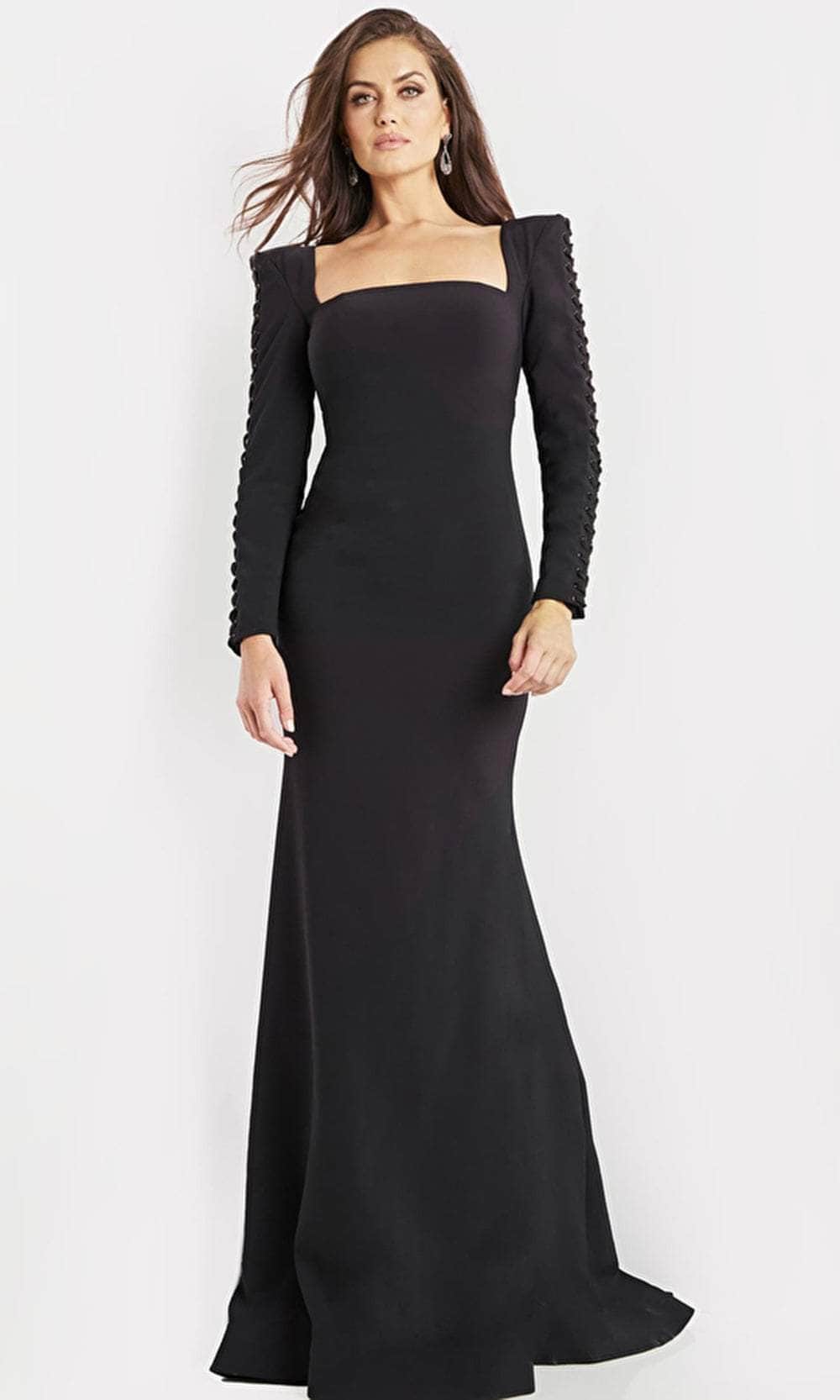 Jovani 09587 - Long Sleeve Square Evening Dress