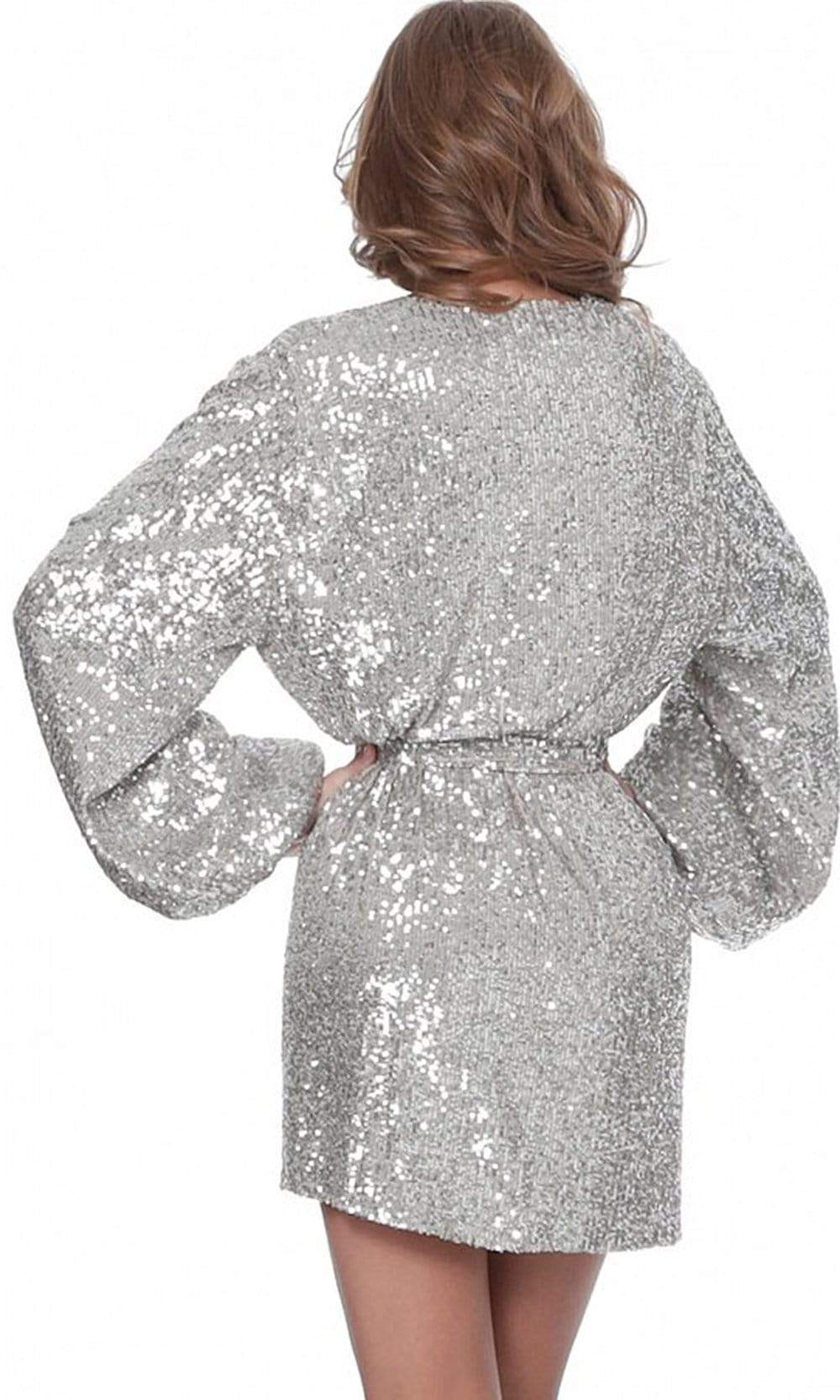 Jovani - M3612 Sequined Deep V-Neck Wrap Dress