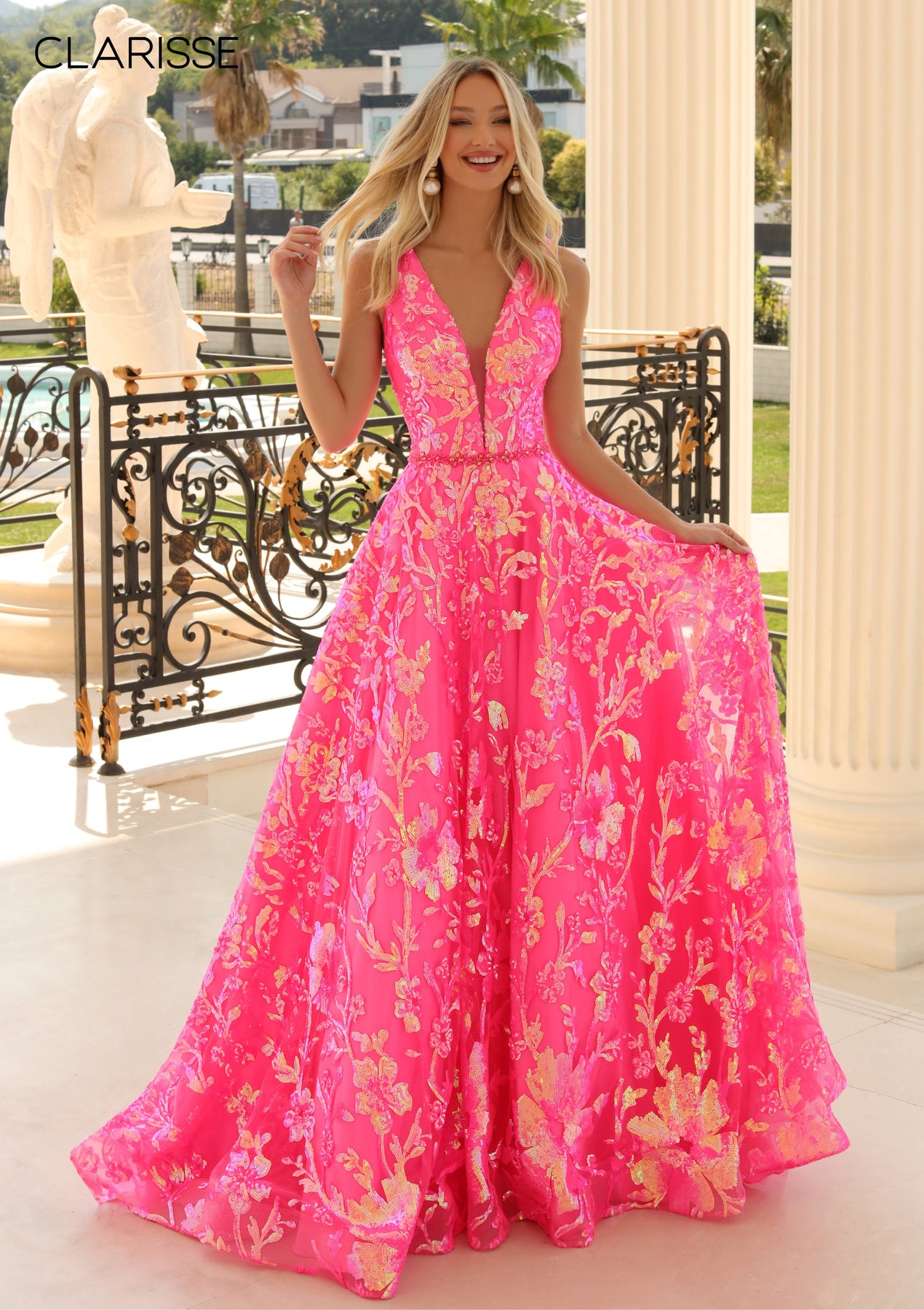 Get ready to dazzle in the Clarisse 810458, a show-stopping ballgown that's pure magic. Covered in eye-catching iridescent sequins arranged in a stunning flower pattern, this dress catches the light from every angle, creating a mesmerizing shimmer as you move. The flattering V-neckline draws attention to your face, while a gorgeous beaded belt cinches your waist for that perfect silhouette. The daring open V-back adds just the right amount of allure and sophistication. And here's the cherry on top—functional pockets mean you can actually carry your essentials while looking absolutely fabulous. This is the dress that guarantees you'll be the star of the show all night long.