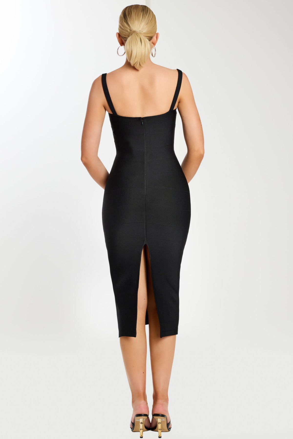 Elevate your evening wardrobe with the Jovani 46641 Dress, a sleek black midi design that exudes sophistication. Featuring exquisite rhinestone detailing, this dress offers a refined sparkle that enhances its elegant silhouette. Perfect for formal occasions, its tailored fit ensures a flattering shape while the midi length provides timeless style. Ideal for those seeking a balance of classic charm and modern glamour.