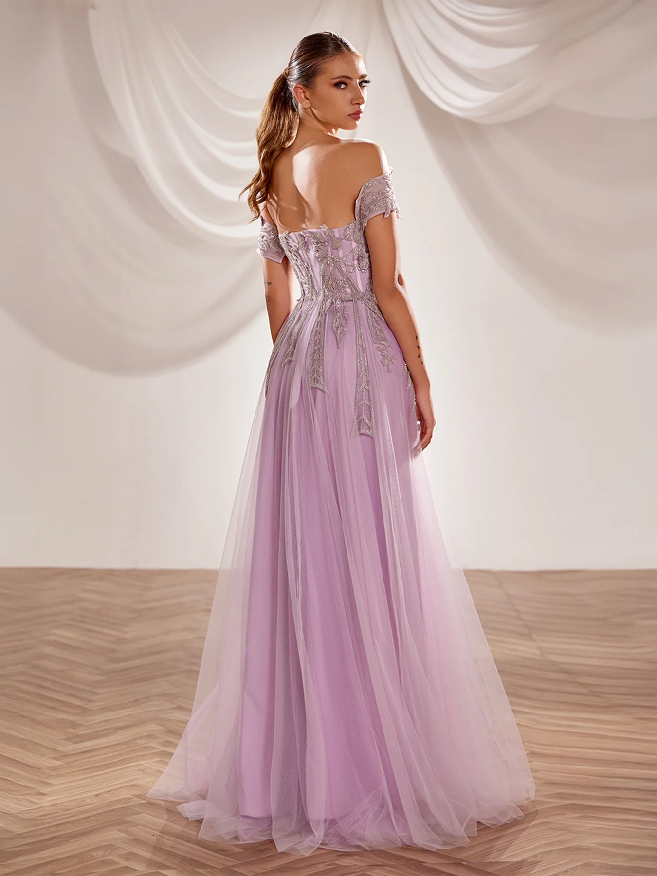 Escape into elegance with the Reverie Couture SS256, a dreamy lilac A-line gown that whispers sophistication. The off-shoulder asymmetric neckline creates an effortlessly chic silhouette, perfect for those who dare to stand out. Flowing fabric drapes beautifully, catching light with every movement. Whether you're heading to a special occasion or simply want to feel like the main character, this enchanting piece transforms any moment into something magical. Pure romance in lilac.