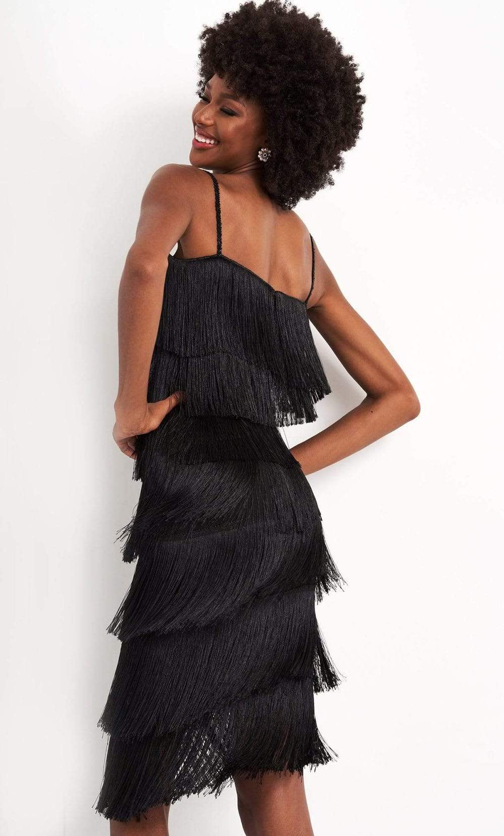 Jovani - M3220 Spaghetti Strap Fringe Cocktail Dress