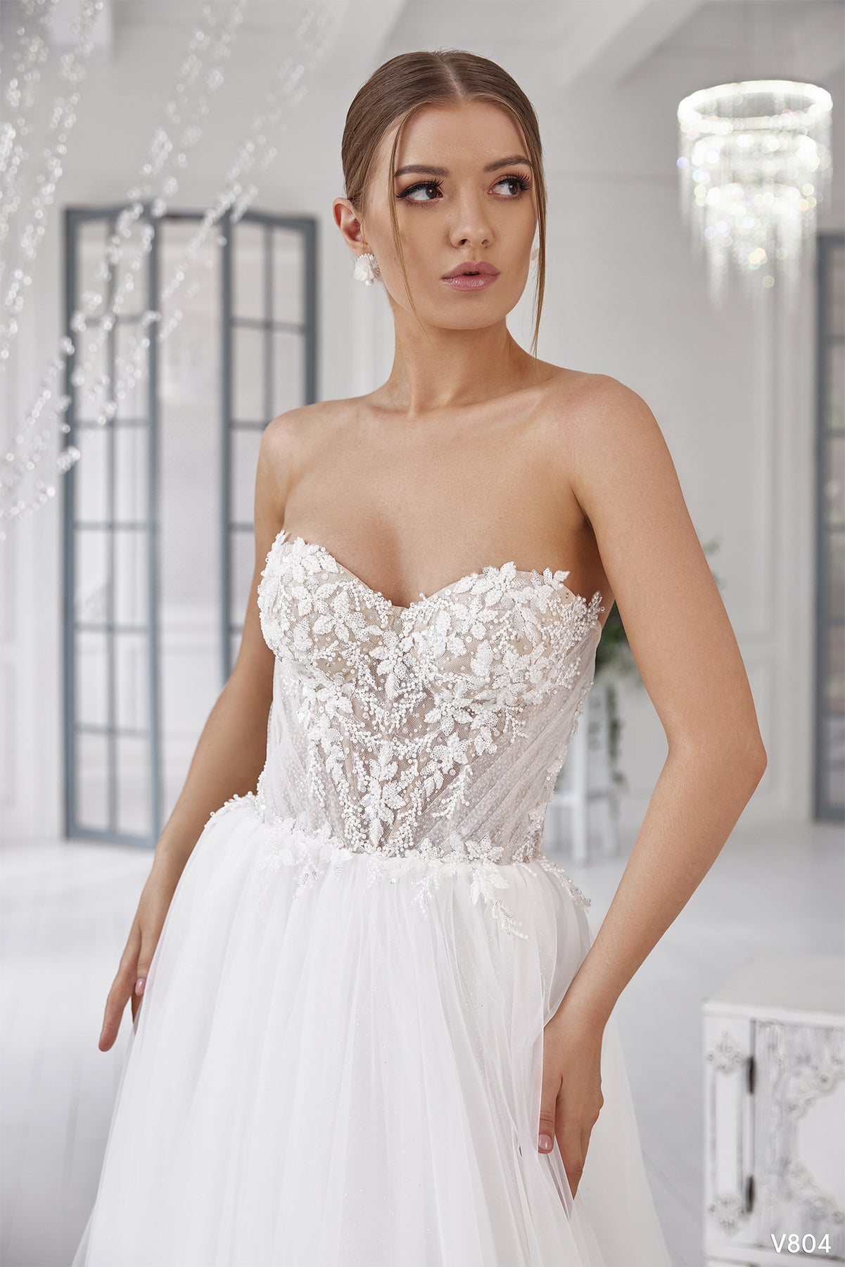 The Vissaria 804 Dress is a stunning bridal gown designed to make you feel absolutely radiant on your special day. This elegant ball gown features a romantic sweetheart neckline and graceful off-shoulder design that beautifully frames the shoulders and décolletage. The flowing long silhouette creates a timeless, fairy-tale aesthetic, while the daring open back adds a touch of modern sophistication and allure. Perfect for brides seeking a dress that balances classic romance with contemporary style, this gown promises to make you feel confident, beautiful, and unforgettable as you walk down the aisle.