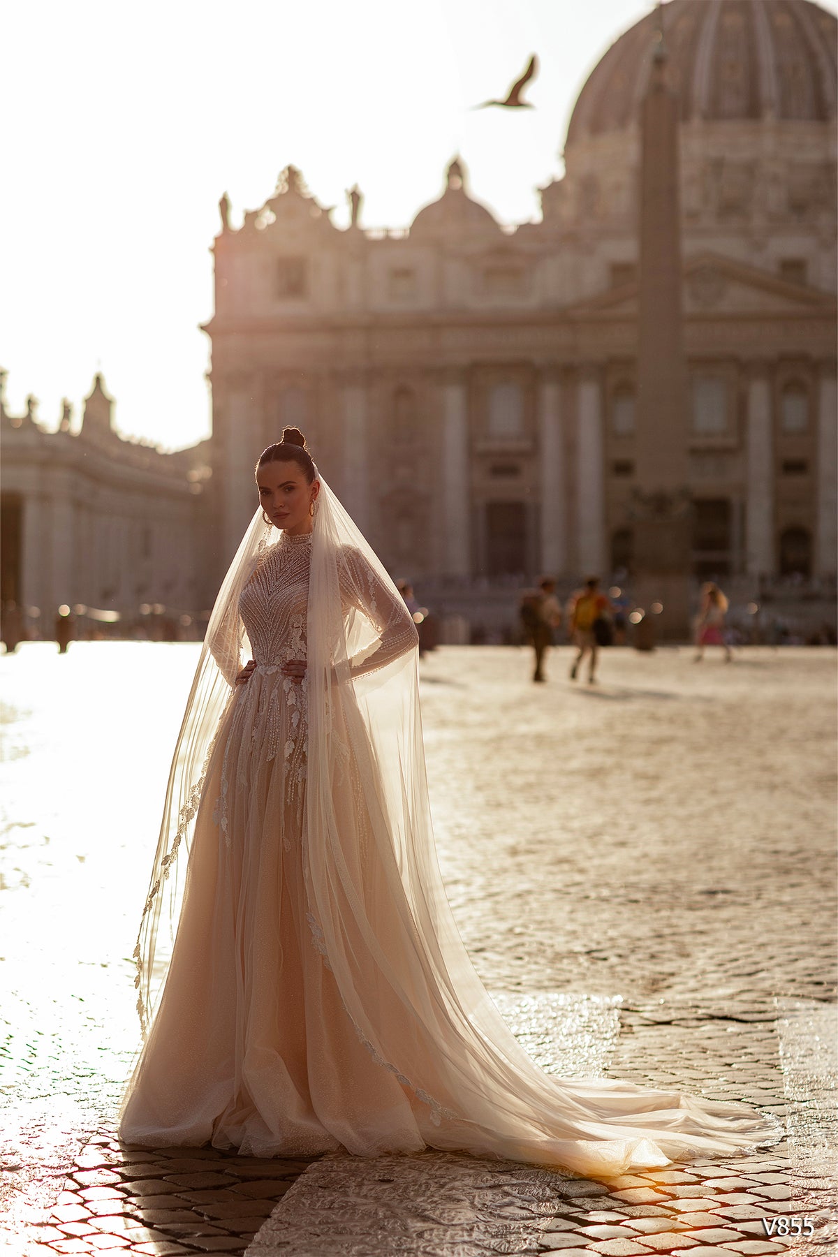 The Vissaria 855 Dress is a stunning ball gown designed to make your special day unforgettable. This elegant bridal gown features a romantic sweetheart neckline paired with a graceful high neckline detail, creating a sophisticated silhouette that flatters and enchants. The flowing, floor-length skirt offers the timeless drama and grandeur every bride dreams of. Perfect for creating those magical moments, this dress combines classic bridal elegance with modern refinement, ensuring you feel confident, beautiful, and absolutely radiant as you walk down the aisle.