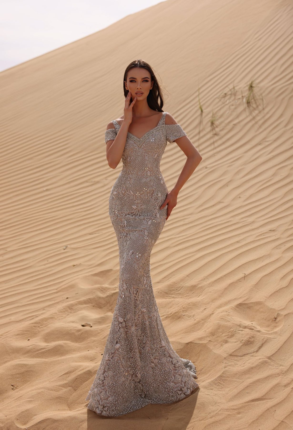 Chic and Holland HF110283 Fall 2024 evening collection dress.