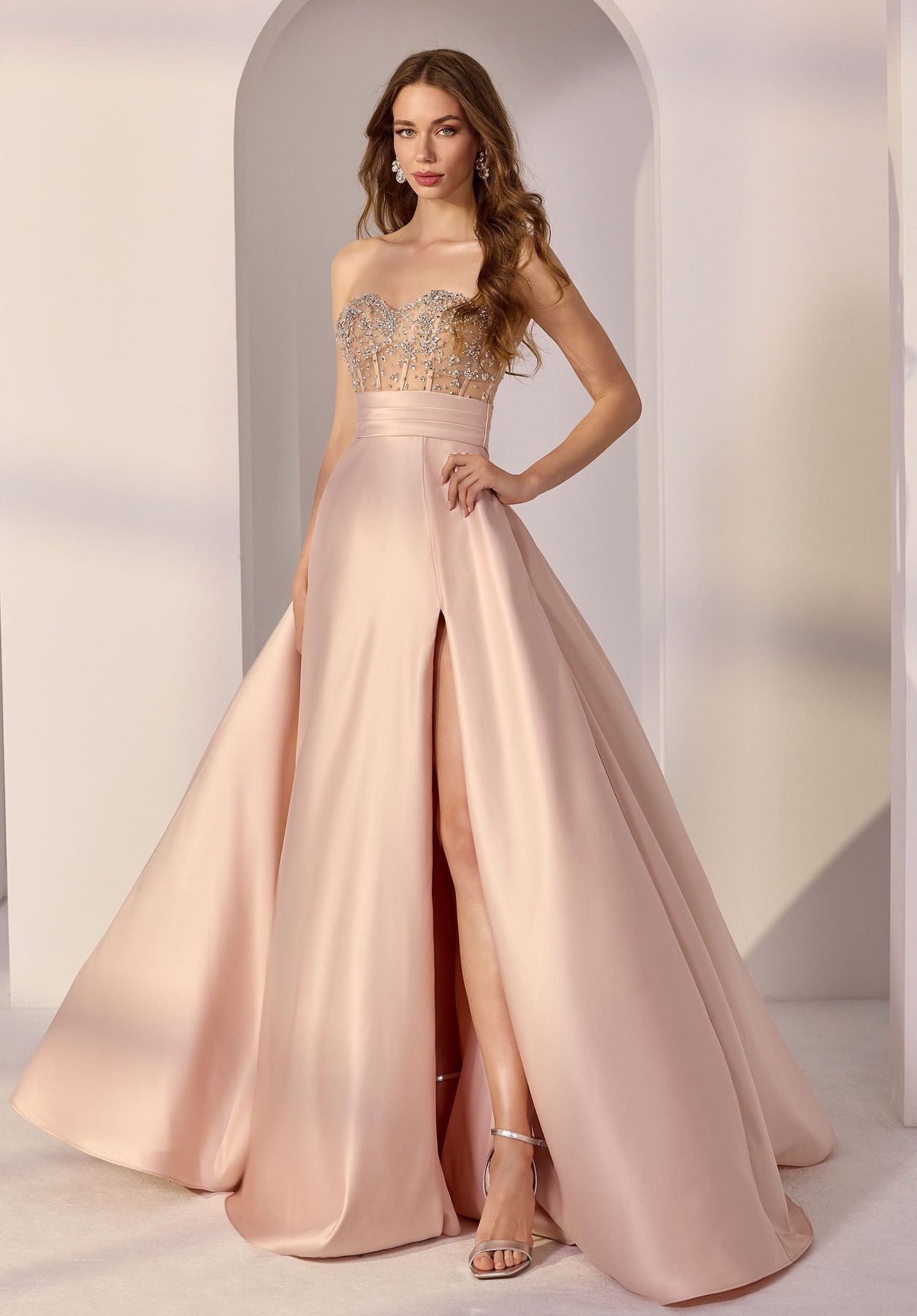 Embrace timeless elegance with the Morilee 49302 Dress, a stunning strapless gown designed to make you feel confident and radiant. This exquisite ball gown features a flattering A-line silhouette that gracefully skims your figure, while the sweetheart neckline adds a romantic touch. Crafted from luxurious satin, the fabric drapes beautifully to create a sophisticated look perfect for weddings, galas, or any special occasion. The strapless design offers versatility in styling, allowing you to accessorize freely and showcase your personal flair. Let this dress be your moment to shine.