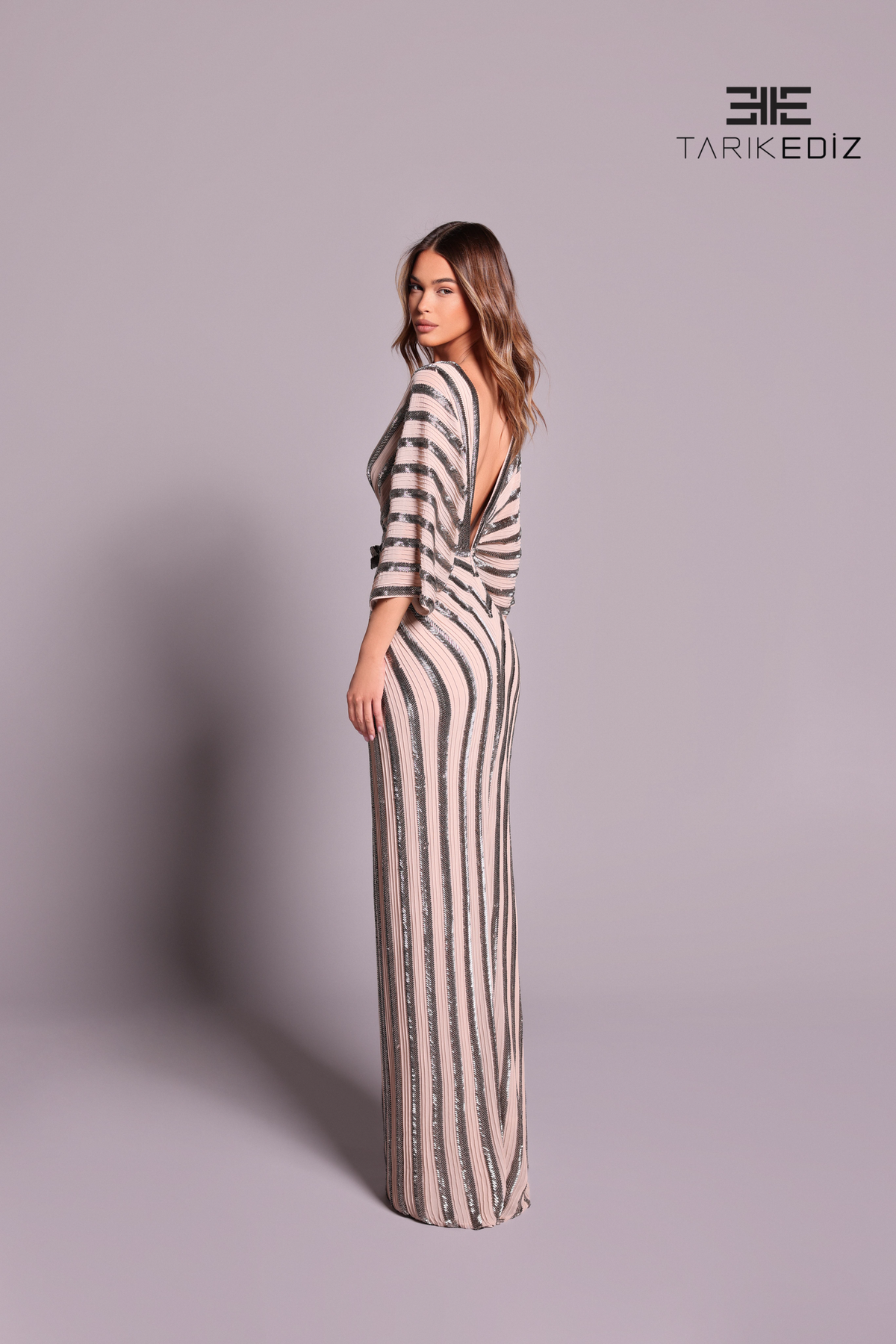 Elevate your style with the Tarik Ediz 99043 Dress, a playful blend of elegance and charm. Featuring a flattering V-neck and long sleeves, this long beaded dress dazzles with a unique open back design. Perfect for turning heads, its cute yet sophisticated silhouette makes every occasion feel special. Step into standout glamour with this one-of-a-kind piece that combines timeless grace with a touch of fun.